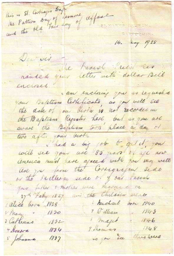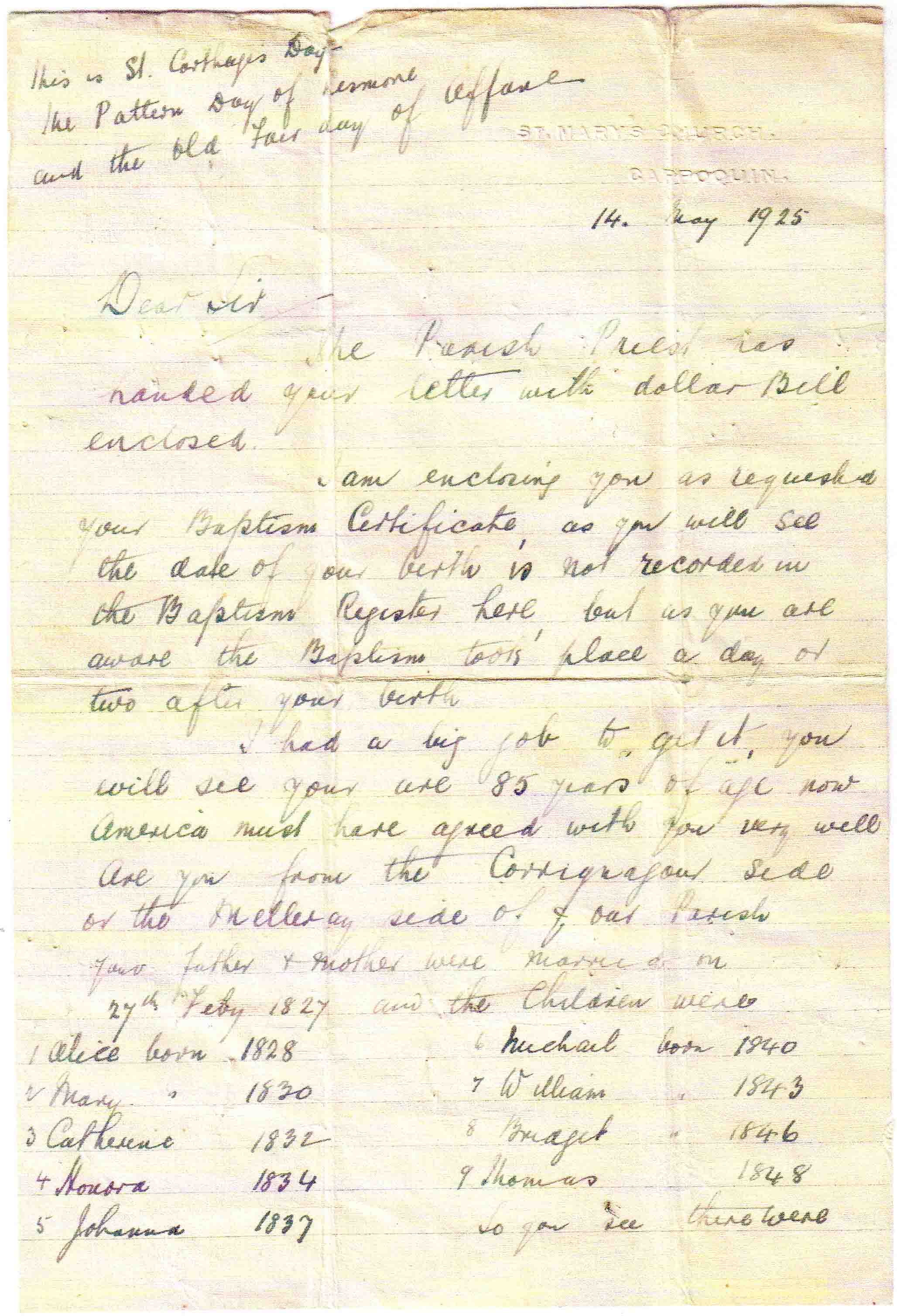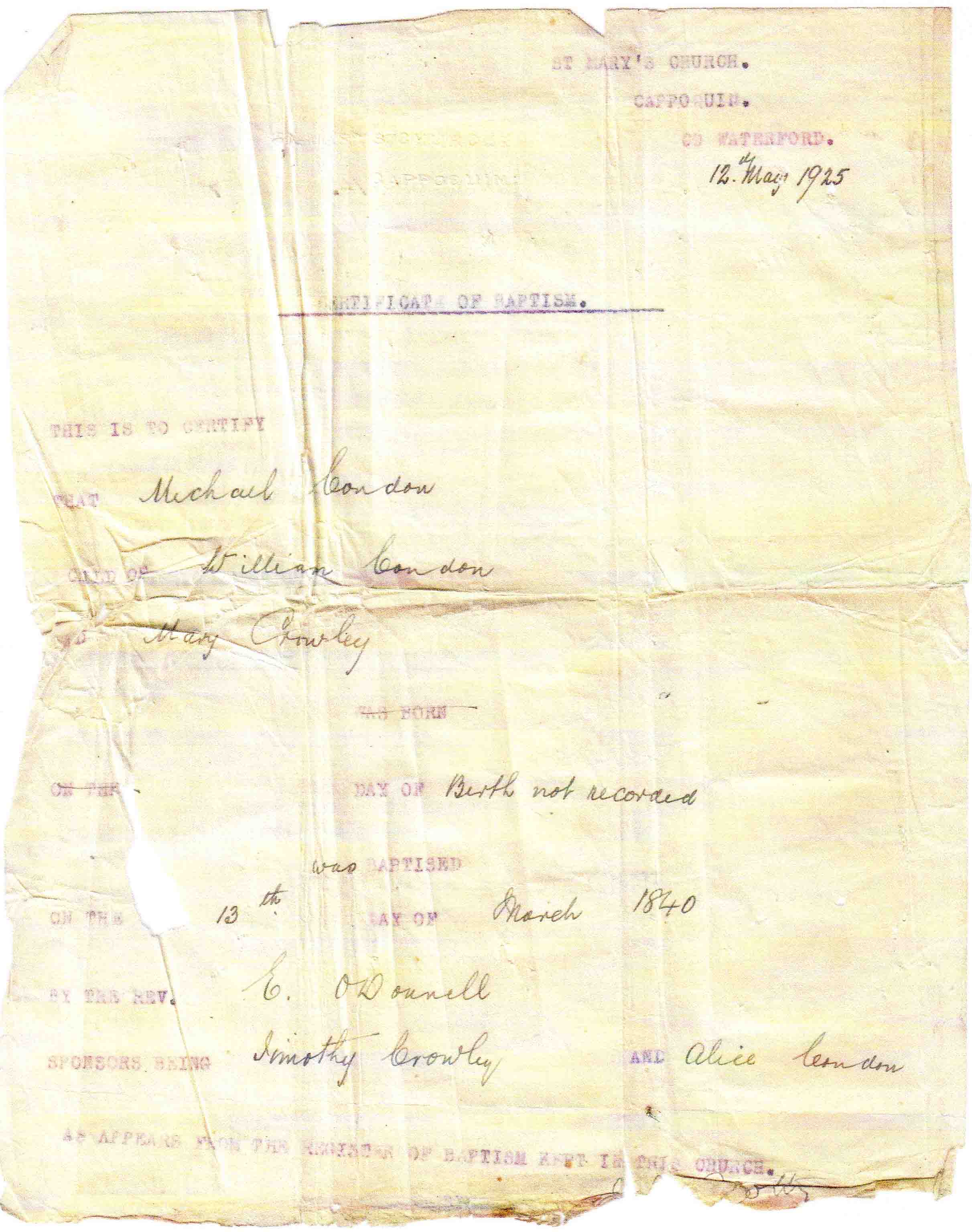 church at his Irish birthplace, Cappoquin, County Waterford. The